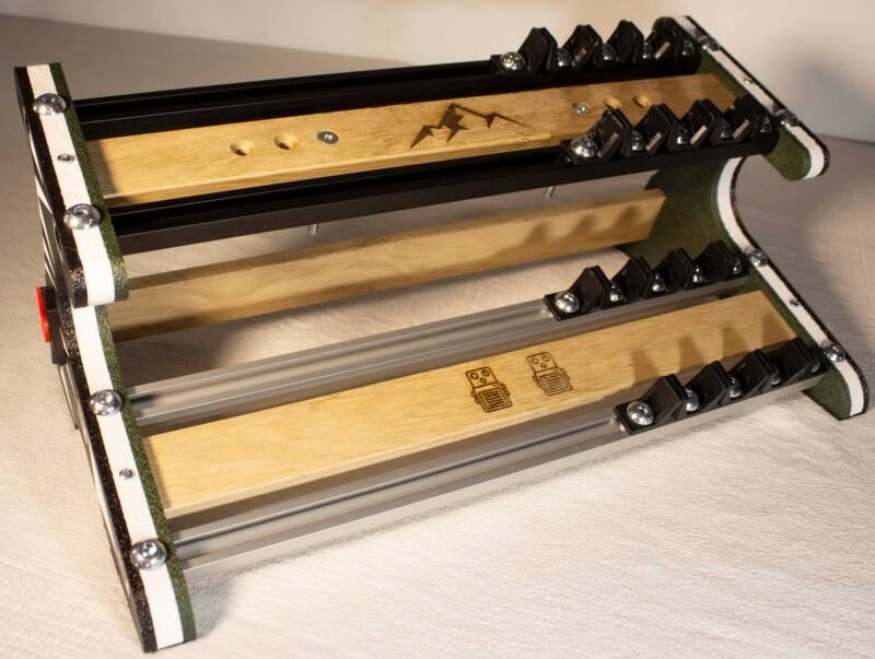 35 cm utile en largeur (39 cm hors tout). Idéal pour la mojorité des configurations (Boss/MXR/mini...) en home studio ou sur scènes exiguës. Ne convient pas aux pédales wah, volume ou whammy. Conseil : Pour ces formats, orientez-vous vers notre modèle « Les Sables.. ».