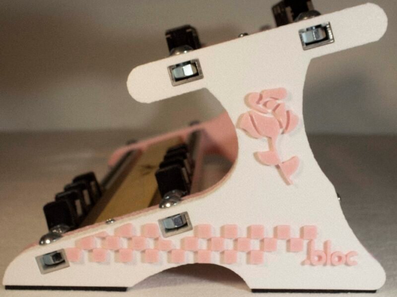 De 6 à 8 pédales selon les tailles. Support Alimentation Intégré : Logement dédié sous le plateau (max H 3,5 x L 22 cm) compatible avec la majorité des alims du marché.